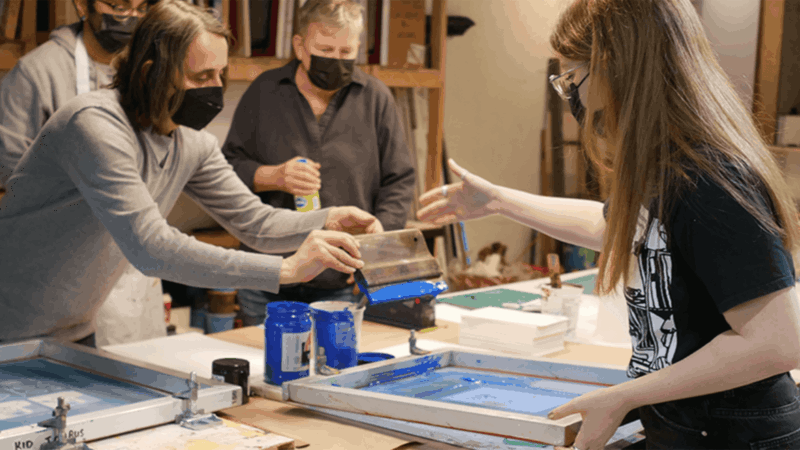 Take workshops in traditional crafts. Many Art and Design schools such as OCAD, Alberta University of the Arts, NSCAD and Emily Carr have extensive Continuing Education programs where you have access to both teaching and full studio resources and materials. There are also a range of smaller studios such as Kid Icarus in Toronto for silk screen printing or Porchlight Press in Vancouver for letterpress where you can either learn or extend your skills in a single discipline.