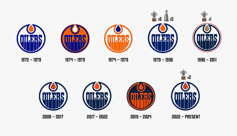 While many teams around the league have undergone major logo redesigns over the years, the Oilers are among the few teams that have kept the same logo throughout their history. Nostalgia, ownership and on-ice success have played significant roles in this. When examining the team’s colours and jerseys throughout the years, it’s clear that they had a bit of an identity crisis. However, when you put all of their primary logos together, the foundation of the original logo design remains intact.