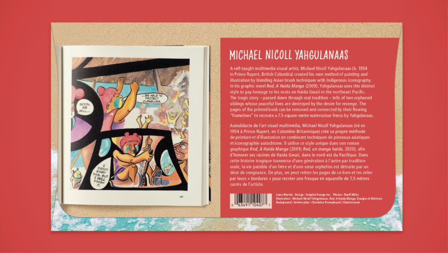 Michael Nicoll Yahgulanaas is a multimedia visual artist who created his own illustrative style by blending Asian brush techniques with North Pacific Indigenous iconography, which can be seen in his 2009 graphic novel Red: A Haida Manga.