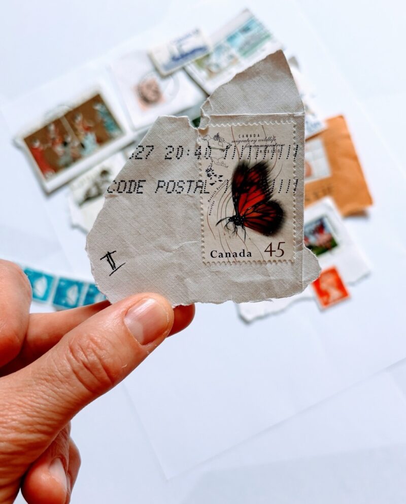I’m especially drawn to the way texture and colour bring stamps to life. I also love that no two stamps affixed to envelopes and dropped into the postal system are ever truly the same. They’re time-stamped as they pass through offices, taking on an additional layer of history that shares the story of their journey.