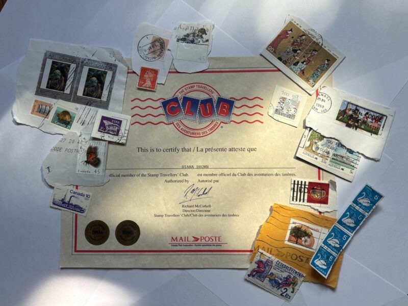 It’s impossible to choose a favourite. The whole package is my favourite: the vintage stamps, my grandfather’s stamp collector’s book and my more than 30-year-old Stamp Travellers’ Club certificate that forever places my love of stamps on display.