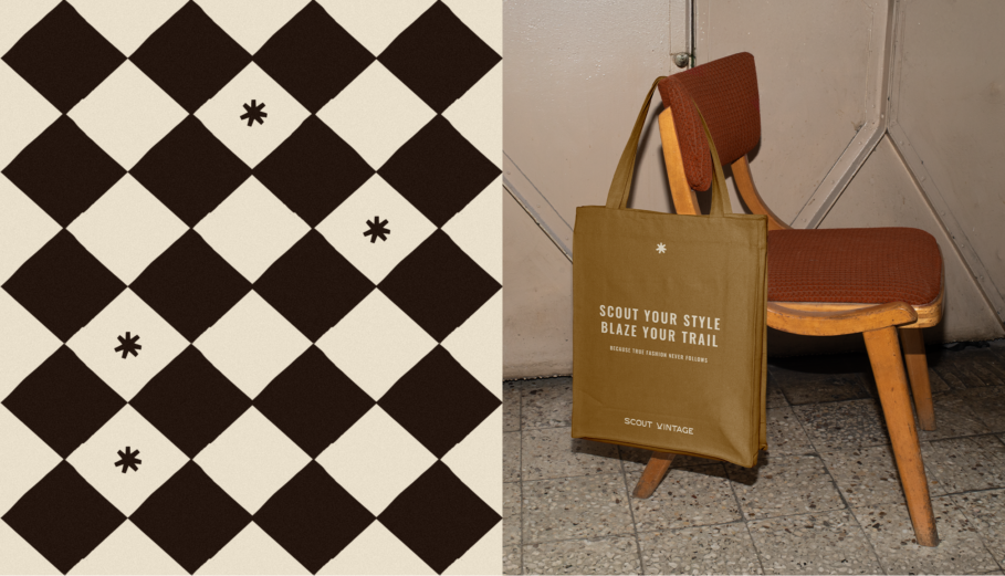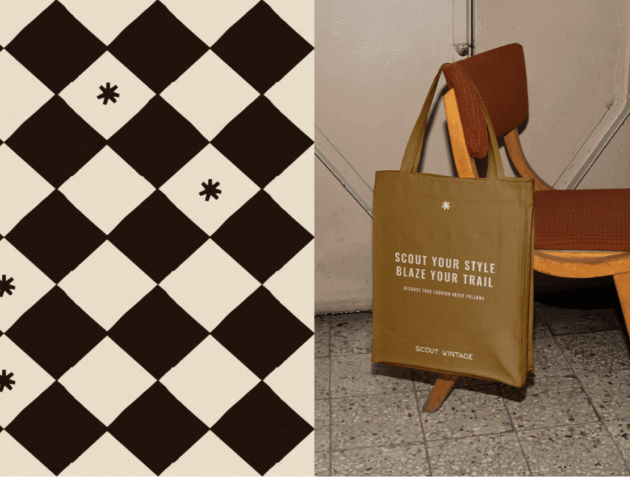 At the heart of the identity is the balance between western charm and contemporary sensibility. Twin Studio drew inspiration from the West’s landscapes, reimagining classic western symbols into minimalist patterns and bold visuals. The colour palette bridges tradition with modernity, combining warm, earthy tones with unexpected fresh accents. Typography is bold yet refined, reinforcing Scout’s confident identity. Together, these elements create a cohesive brand centred not only on vintage clothing but on celebrating stories, individuality and sustainability.