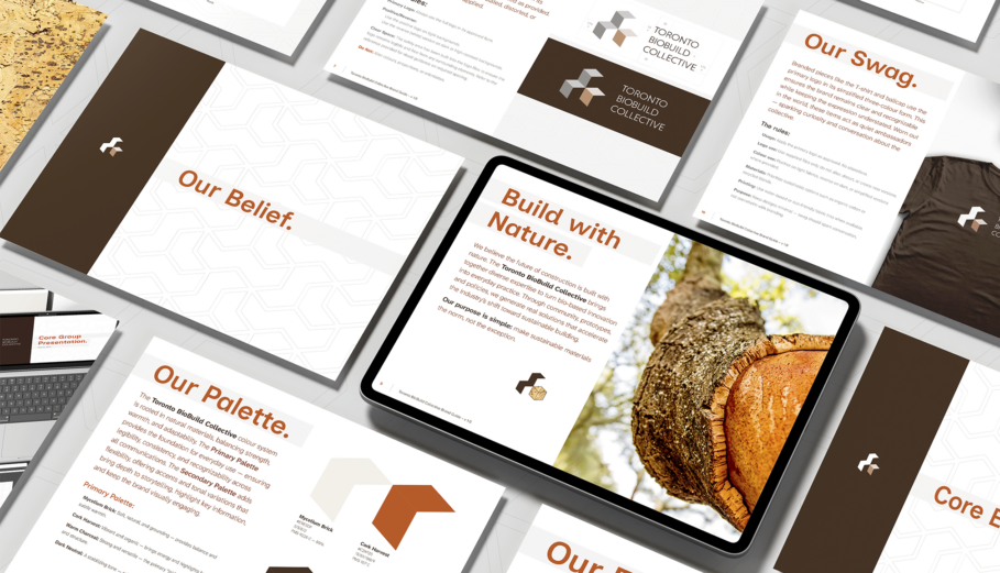 The Toronto BioBuild Collective (TBC) is a volunteer-led group of architects and researchers advancing sustainable building practices. As participation grew, its identity and communications risked becoming inconsistent across contributors and platforms, weakening the clarity and credibility needed to advance its mission. Rather than a full redesign, Matt DeAbreu RGD focused on stewardship and refinement, conducting a visual audit of existing materials to identify issues with legibility, logo spacing, colour application and typographic hierarchy.