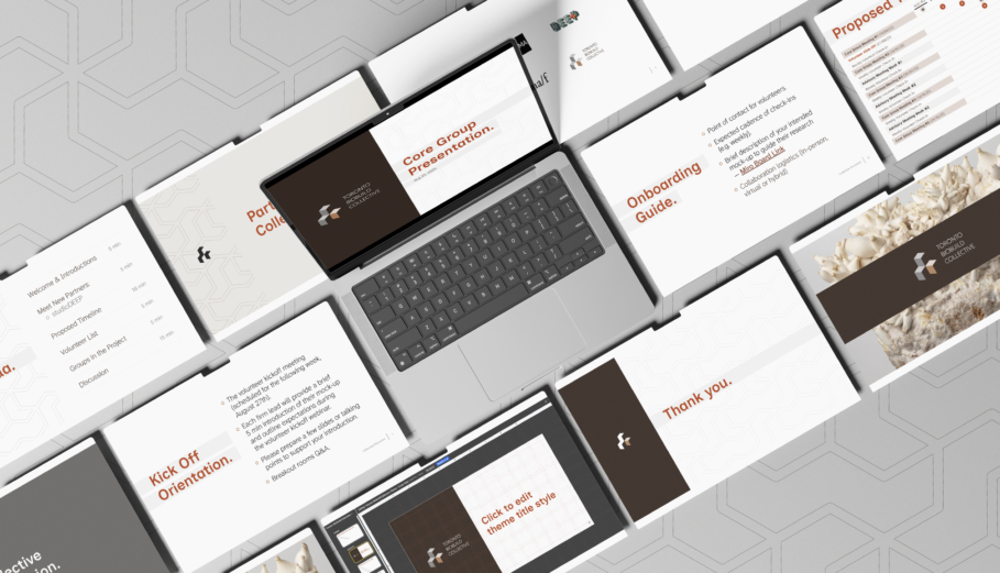 The process prioritized accessibility and scalability, testing typographic systems, refining a material-inspired palette with contrast guidance and validating decisions through real-use mockups. The final deliverables included a Brand Guide, expanded logo set, email signature system and presentation template, embedding hierarchy and contrast into everyday communications. The system was implemented during a major research initiative involving six architecture firms and more than 60 volunteers, helping unify contributors around a shared identity at a critical moment of growth.