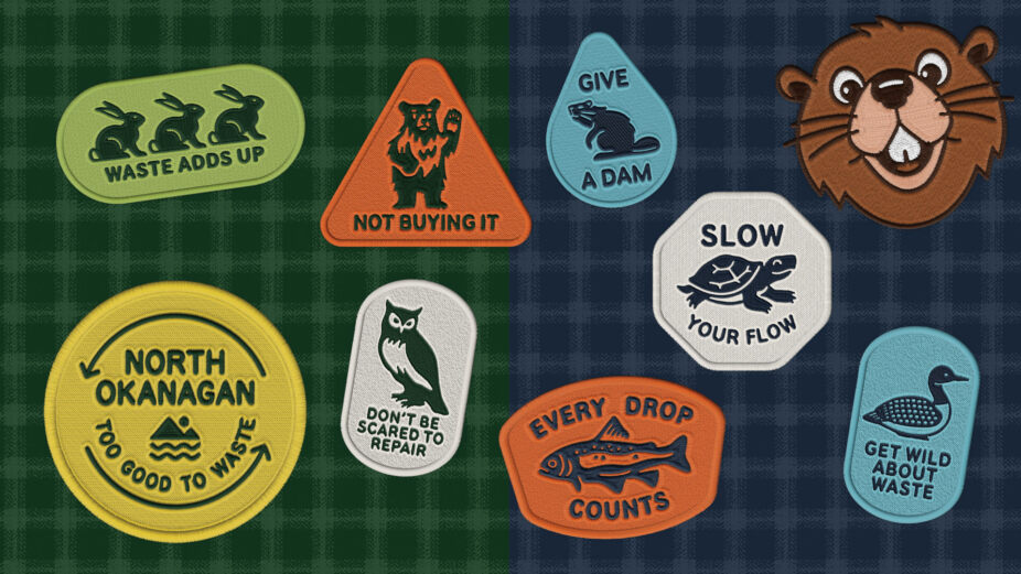 The campaign's primary demographic focus was school-age children, identified as key influencers of family habits. Rather than engaging with broader political conversations around climate change, the campaign tapped into the audience's shared pride in where they live. The campaign identifier, North Okanagan Too Good to Waste, was designed to be an agreeable statement that resonates regardless of individual viewpoints. The visual identity draws from the region's environmental beauty and outdoor recreation culture, featuring an earthy colour palette, patch motifs and park-inspired typography. A cast of local animals serves as a role model, delivering cheeky messages that encourage audiences to waste less.