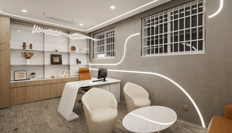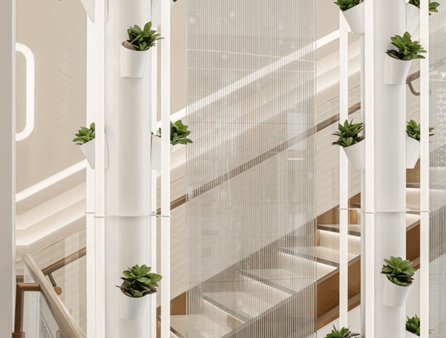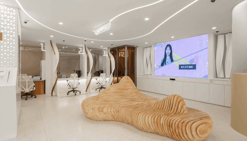 Built on the philosophy of Qi—the natural flow of energy—this concept is reflected throughout the space. The overall palette is light and airy to reference the life breath, while curving architectural lines and LED lighting symbolize energy and enlightenment. Organic materials balanced with warm finishes create a modern yet grounded atmosphere. Soft, fluid forms are contrasted with angular geometric patterns, establishing a structural framework that guides the movement of energy throughout the space. CQRC’s humanistic approach sets a visionary example of how the financial sector can evolve. It is an immersive, future-forward space that prioritizes connection, sustainability and the customer journey, proving that banking can be more than a transaction—it can be an experience.