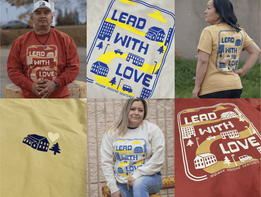 Lianne Charlene Creative designed an illustrated map featuring the phrase “Lead with Love” alongside four symbolic building structures, representing NiGiNan’s four housing projects in Edmonton. The design was produced on three crew neck sweater colours, two t-shirt colours and a hat. The collection was well received when it first launched in the fall of 2024. The apparel is currently still selling through the client, online and in stores. Lianne Charlene Creative’s work with NiGiNan Housing has been integral to supporting initiatives that foster positive development and growth within the Indigenous community.