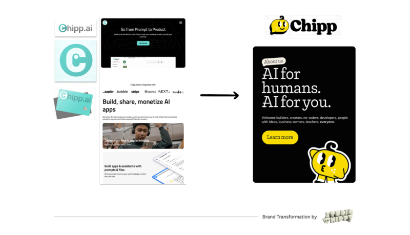 As Chipp transitioned from a payment-processing platform to an all-in-one AI product, its brand needed to evolve too. The challenge? Create a brand that reflects their core belief that AI isn’t just for coders or corporations; AI is for everyone.