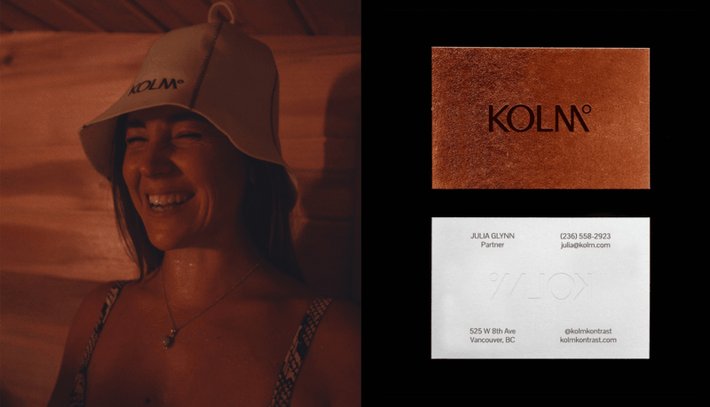Kolm, a multisensory hot-cold therapy studio based in Vancouver, engaged Bruce Mau Design to develop a full brand identity system ahead of its launch. This included naming, brand strategy, voice, messaging and visual identity. The goal was to communicate the science behind contrast therapy while embracing its more intangible, emotional benefits.