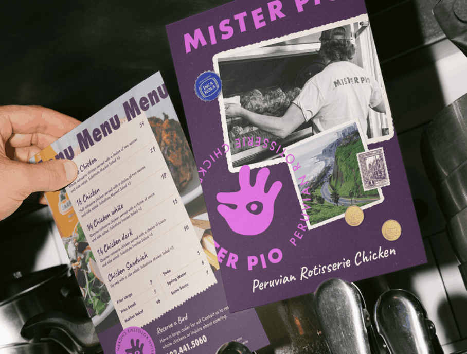 MISTER PIO is a Peruvian rotisserie chicken restaurant in Phoenix, Arizona, with a deep commitment to authentic, high-quality cuisine in a casual setting. Birds are seasoned with a 22-spice rub, marinated for 48 hours and traditionally cooked over a charcoal and wood fire. The owners partnered with Toronto-based creative agency Trew Knowledge to craft a brand that feels modern while playfully connecting to its Peruvian heritage. Conceptualization for Mister Pio began with a dive into Peruvian culinary culture, its ingredients and traditions in cooking.