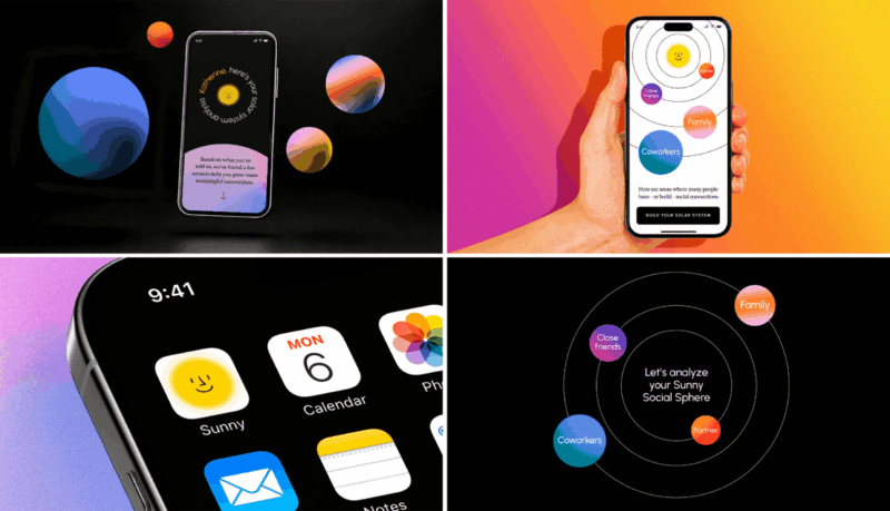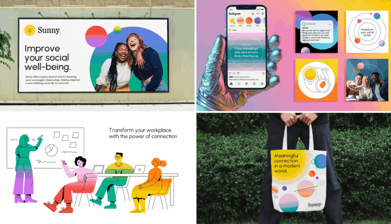 Sunny, a nonprofit dedicated to promoting social wellbeing, approached *TraceElement to develop a brand identity for its upcoming mobile app designed to help people build more meaningful connections. The goal was to create a visual language that embodied warmth, optimism and approachability, while also providing flexibility for growth across digital and marketing platforms. Through in-depth workshops and exploration, the design team identified two key creative directions: a glowing, smiling sun to symbolize positivity and connection and the Social Sphere™, a system of orbiting, planet-like forms that represent the dynamic and evolving nature of relationships.