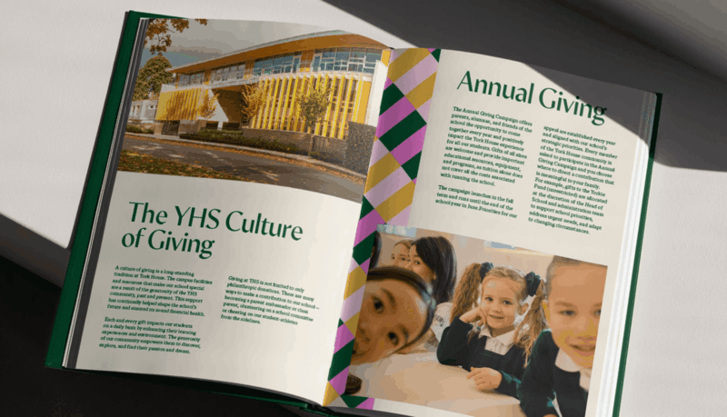 The new visual identity is woven with key elements of York House history and elevated by vibrant colours and contemporary typography. Creative building blocks—such as a library of custom photography and flexible marketing templates—come together in a cohesive, modern brand expression. The result is a bold statement that invites a diverse student body to flourish at York House School.