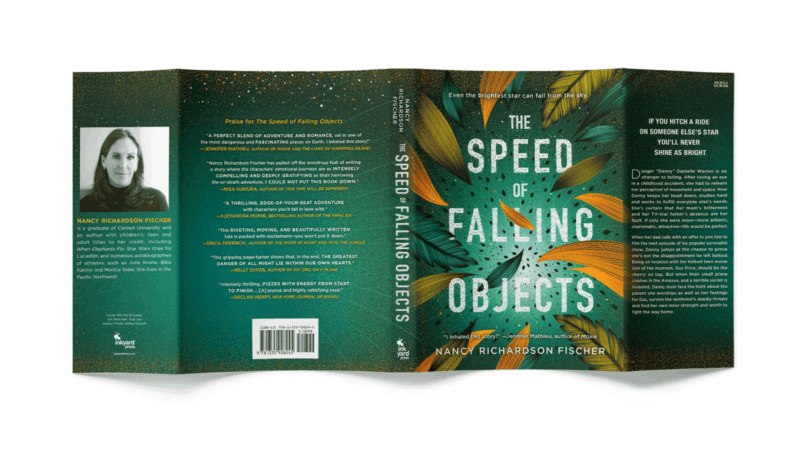 The book cover integrates title and story elements while maintaining a commercial “big book” feel with the design, which captures the story’s mix of many different themes. Part adventure, part coming of age, part romance, part family drama, part suspense, the story is about a young teenager’s search for a connection with her wilderness- survival celebrity father after their plane crashes in the middle of the jungle. Leaning into the title, the design incorporates the idea of “falling” using one point perspective. The big bold type and perspective illustration made this cover stand out from other books in the Young Adult Fiction category.