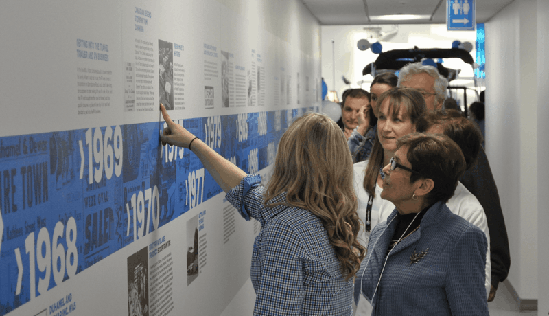 This informative graphic details notable milestones in Legend’s 25+ year history. The 38’ wide design covers the wall in a hallway that connects Legend’s showroom to their service centre. Active correspondence with upper executives at the ownership level informed the content, highlighting the company’s history and origins with supportive imagery. Positioned in a high-traffic area for customers and staff, the impact was maximized for people waiting for assistance and became a highlight for attendees at the first open house hosted at the new facility.