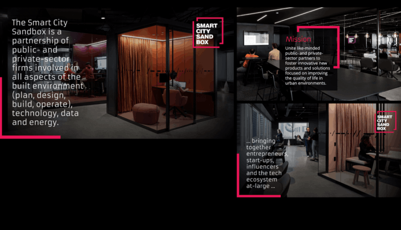 The Smart City Sandbox unites like-minded public- and private-sector partners to foster innovative new products and solutions focused on improving the quality of life in urban environments. The physical Sandbox located in Toronto brings together entrepreneurs, start-ups, influencers, and the tech ecosystem at-large with programming that fosters engagement and collaboration, offering opportunities for developing tangible new products and services. The COVID-19 pandemic prompted the creation of a dynamic virtual environment which offers community members unique opportunities to increase the profiles of their brands and access the latest smart city advances. The Sandbox brand identity is applied throughout its associated collateral and has been extended through membership outreach and application across programming and events. The Sandbox’s reputation as a physical-turned-virtual hub for urban innovation and collaboration continues to gain momentum with new partners and pilot projects.