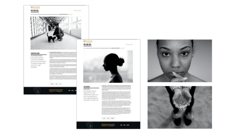 This fifteen-month, weekly digest focuses on members of the Dalhousie community who wouldn’t typically appear in the spotlight but remain vital to the university’s success. Designed to stand out from Dalhousie’s other channels, the approach focuses on portrait photography accompanied by first person stories in the words of the subjects themselves. The sparse site design emphasizes the photos and stories, while subtly connecting to core identity elements. Monthly page views and time spent on pages indicated high levels of engagement with the stories and photos featured.